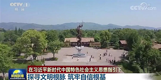 ·韓美林教授設計的良渚國家遺址公園的標志雕塑亮相新聞聯播